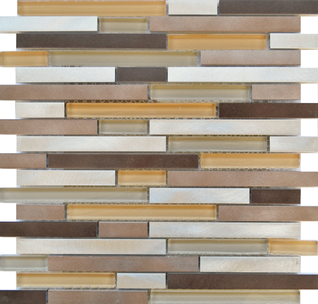 Brazil Mink Strip Brushed Metal & Glass Mosaic 30x30cm