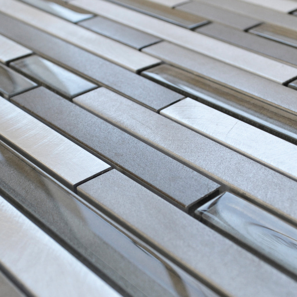 Brazil Platinum Strip Brushed Metal & Glass Mosaic 30x30cm