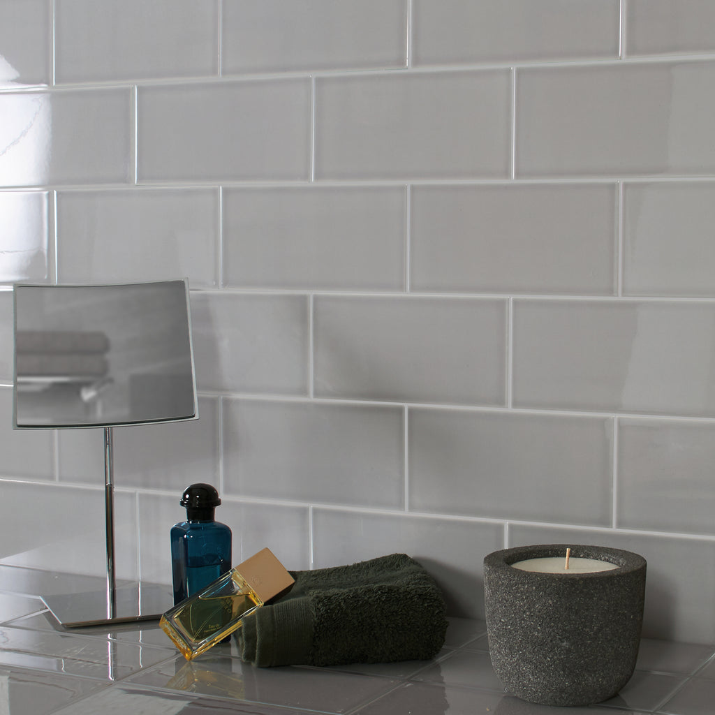 Devonshire Slate Grey Ceramic Gloss Brick Wall Tile 10x20cm