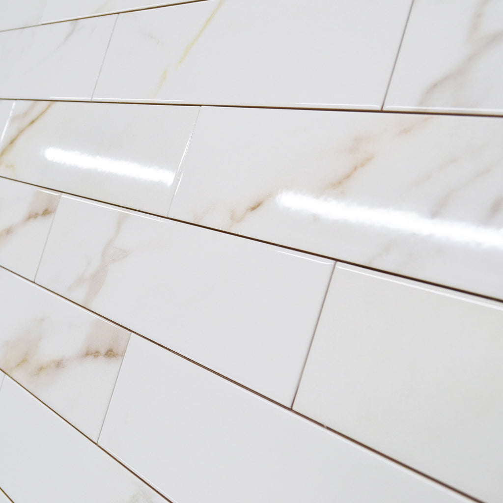 This Calcutta effect ceramic tile is an exquisite replication of one of the most sought-after marbles. The subtle bronze and gold veins add a touch of elegance, perfectly complementing brushed brass fixtures in any bathroom or kitchen. This tile is sure to bring a modern and sophisticated flair to any space.