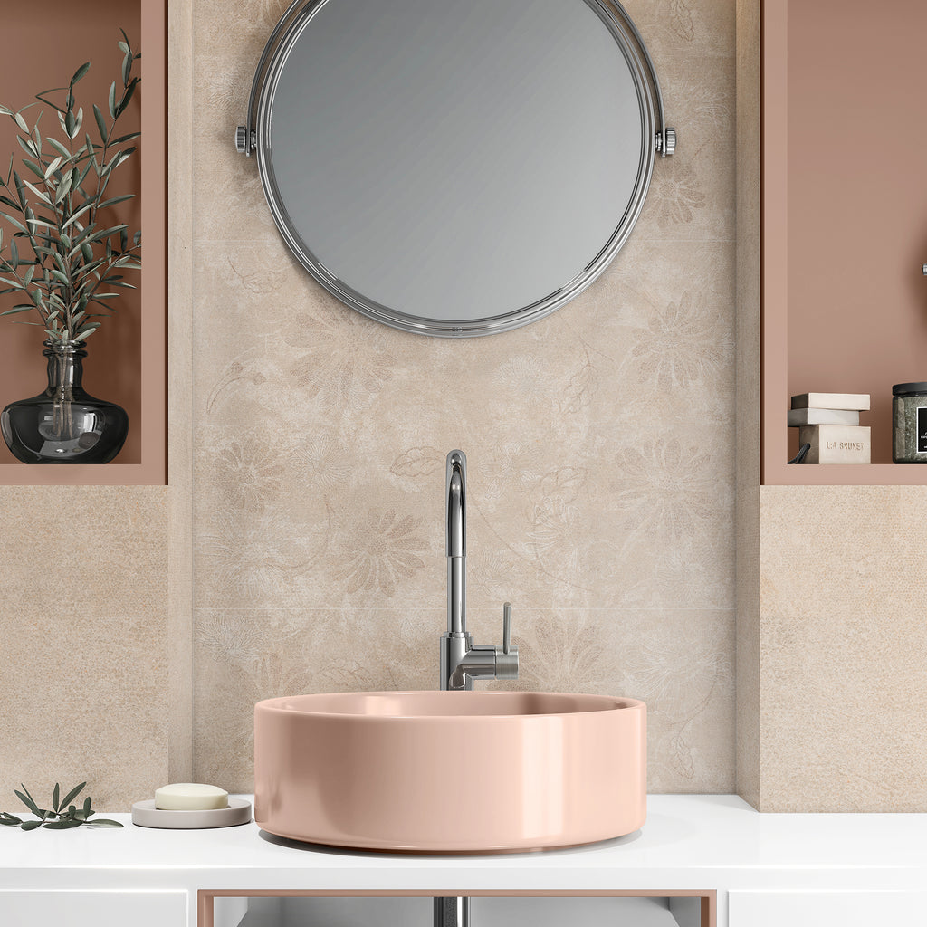 Fallbrook Daisy Decor Beige Ceramic Satin Wall Tile 20x60cm