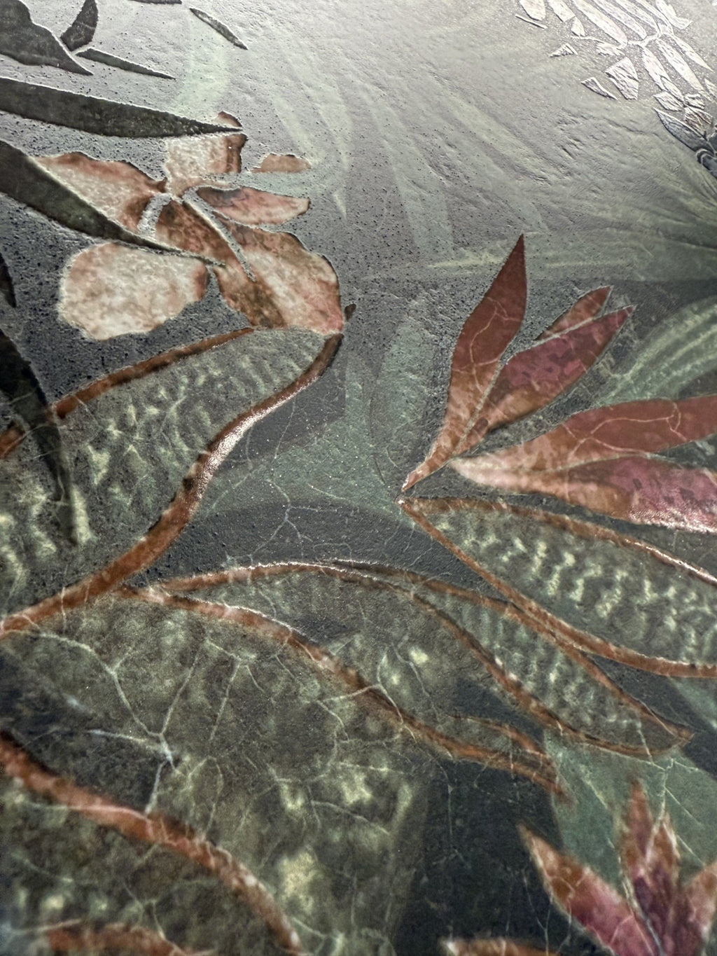 Create a bold and sophisticated statement with the Flore Black Tile, a stunning large-format porcelain design that merges artistry with contemporary elegance. This exquisite tile features a delicate tropical floral print, gracefully layered over a soft black matte background. The result is a surface that feels both dramatic and refined — a perfect balance of nature-inspired beauty and modern minimalism.