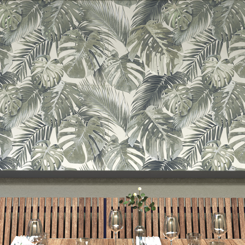 Gardea Light Green Botanical Ceramic Wall Tile 60x120cm