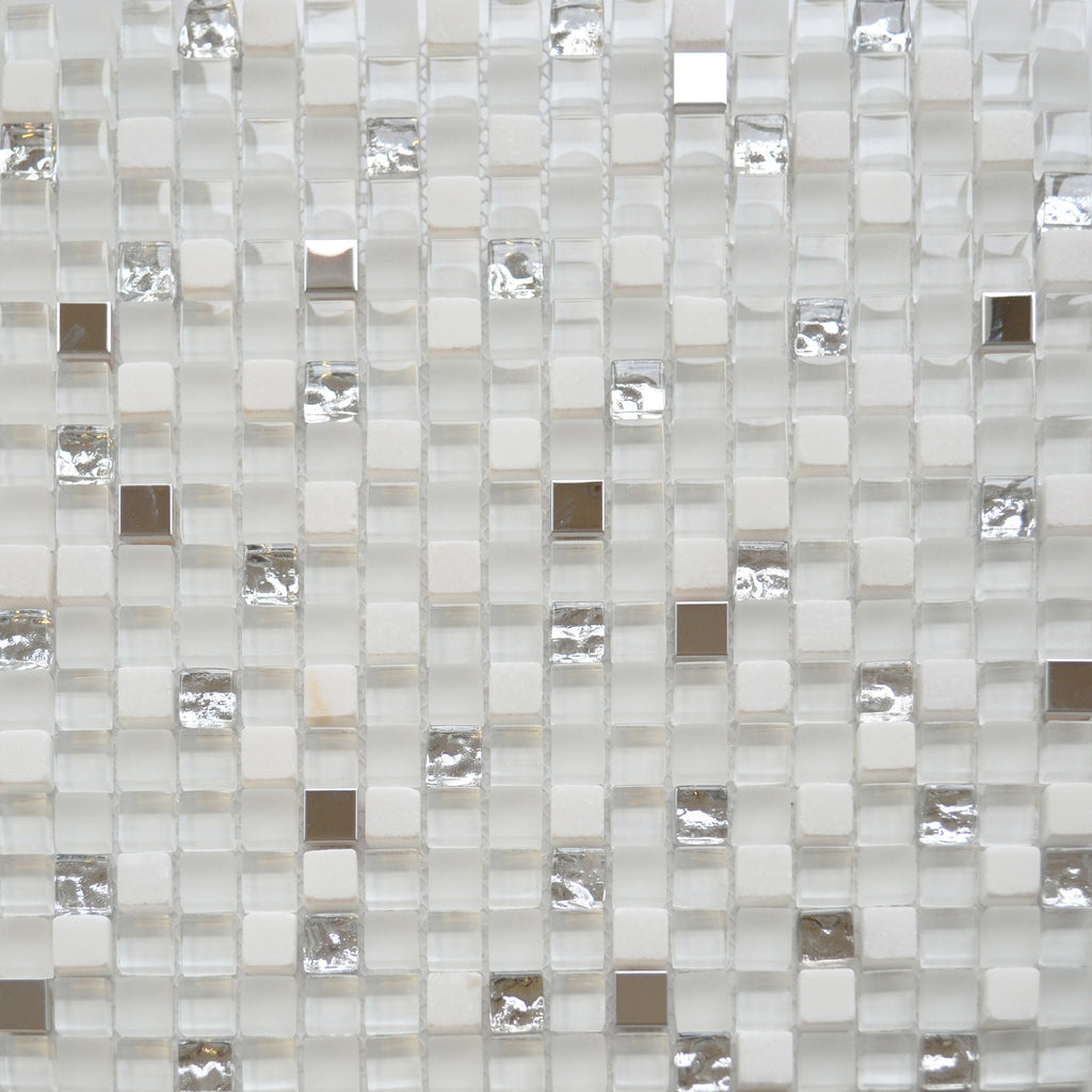 Iceberg White 1.5 Glass Stone Metal Gloss Mosaic 30x30cm