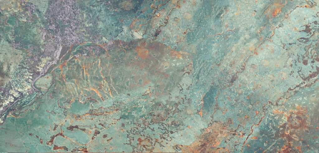 Transform your space with the stunning Modesto Tile, a 60x120cm masterpiece that captures the raw beauty of oxidized metal. Featuring a mesmerizing blend of turquoise, teal, bronze, and rust tones, this tile replicates the natural patina of weathered copper for a bold, artistic look.
