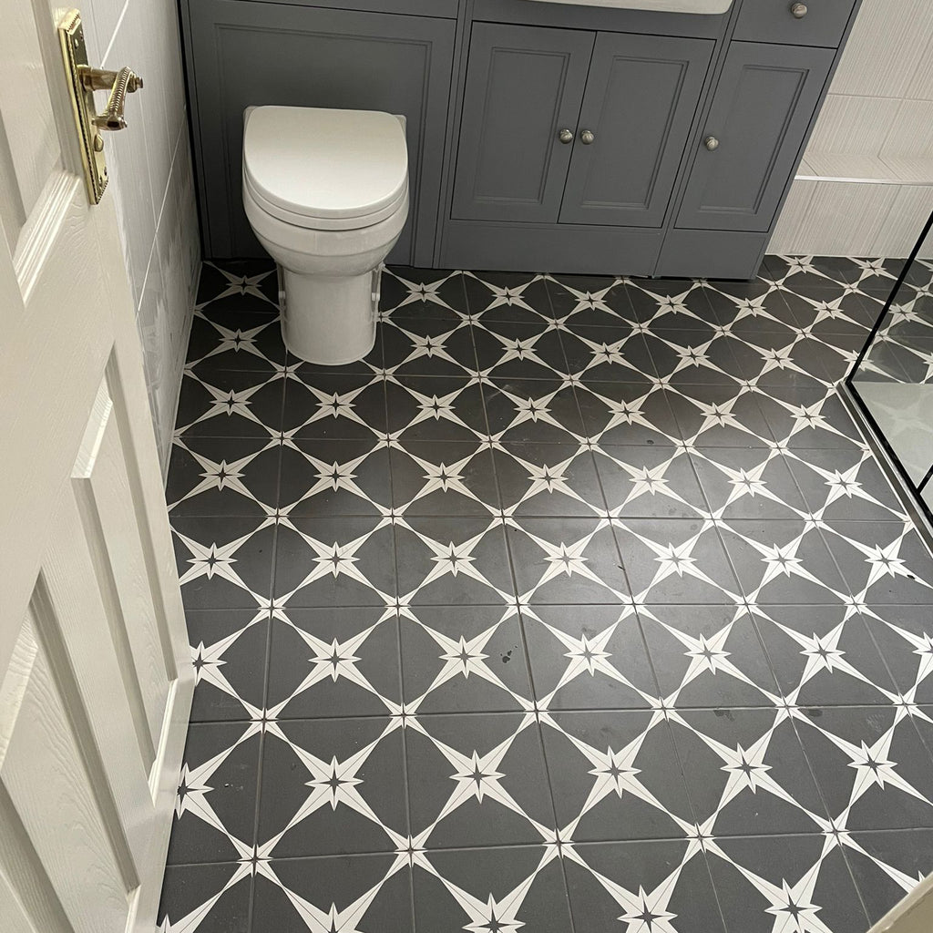 Pluto Black & White Star Pattern Ceramic Tile 45x45cm