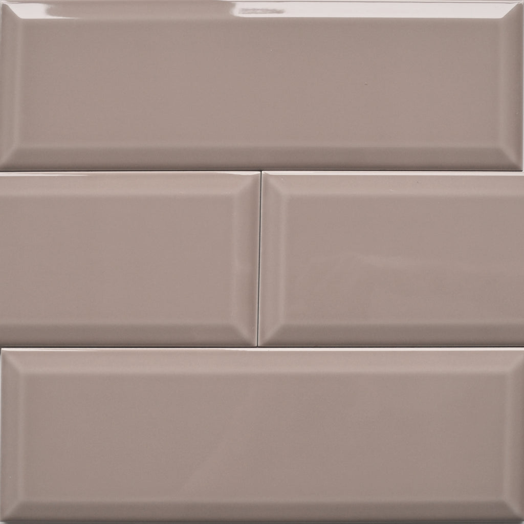 Prismatic Fawn Bevel Ceramic Gloss Wall Tile 10x30cm