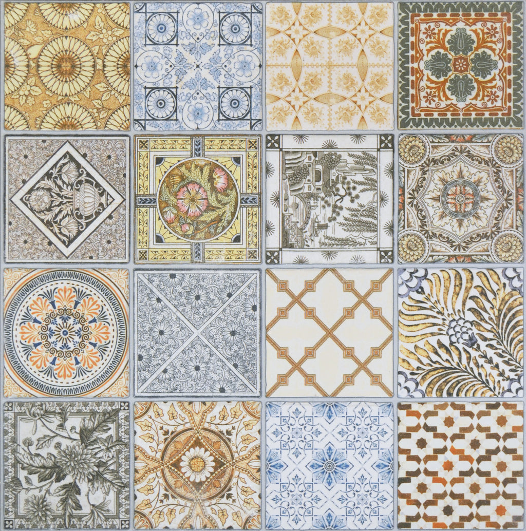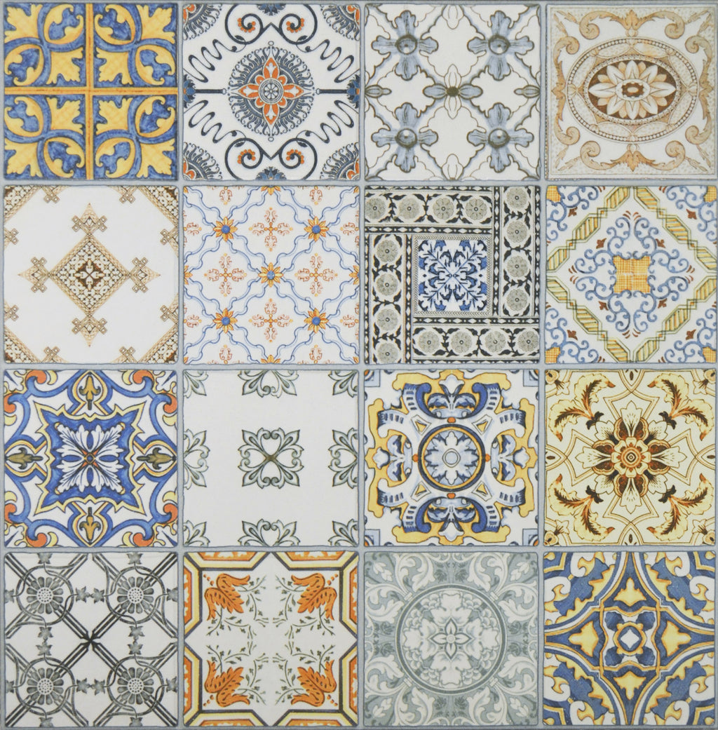 Each box of Ropenza Decor includes seven unique tiles adorned with versatile patchwork designs. Sold per m²