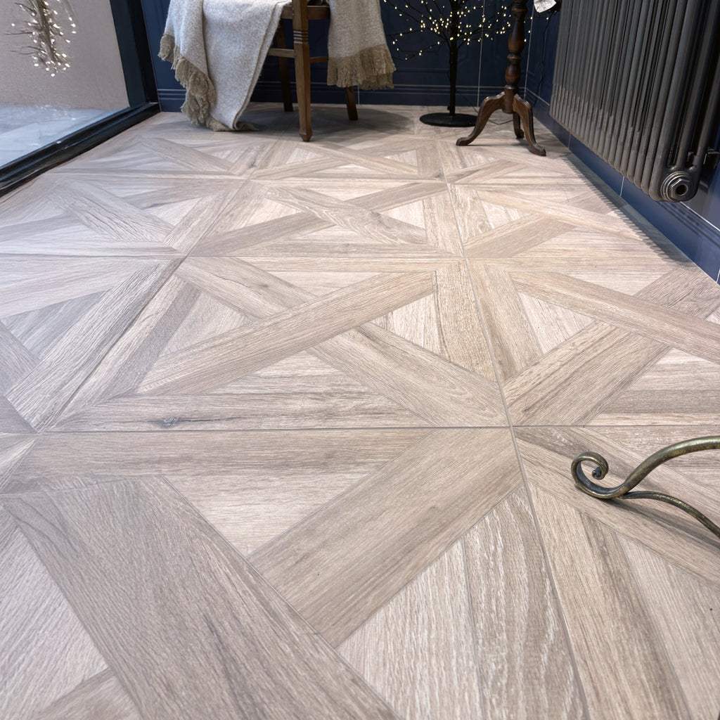 Our Timber porcelain tile is a perfect example of the latest technology in Dynamic HD Imaging™ inkjet printing, which has been used to create a highly realistic wood finish complete with an authentic-looking woodgrain texture. This unique design is reminiscent of traditional vintage floors with interlocking wooden slats that create a charming handcrafted character in any space.